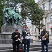 PERFORMANCE / SPAZIERGANG in Form eines Trauermarsches mit Bodo Hell (Text / Performance), Götz Bury (Objekte / Performance)