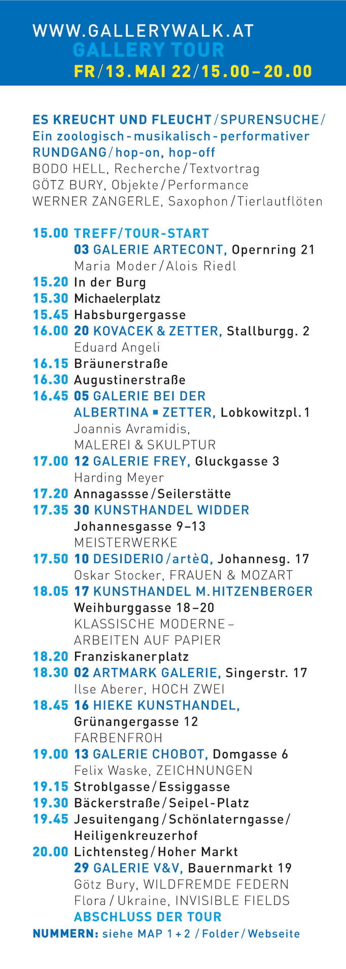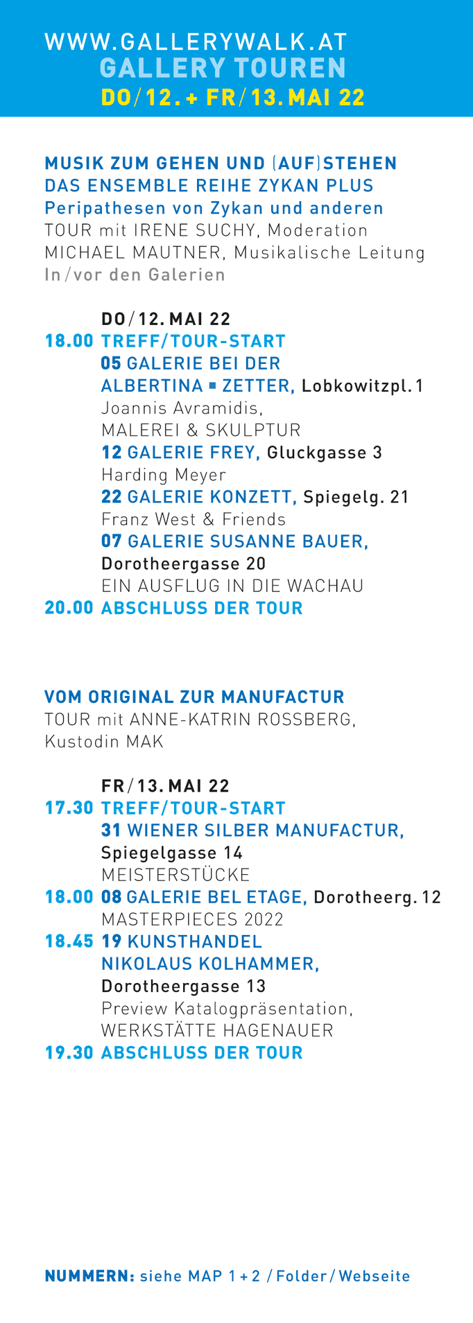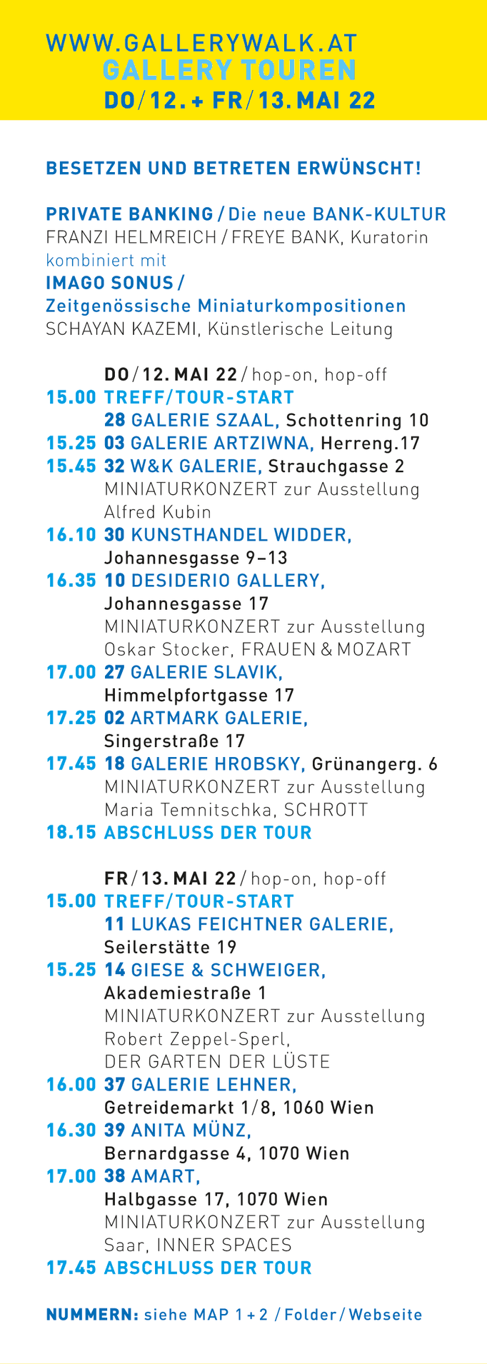 Die GALLERY-TOUREN PROGRAMME - TIMETABLE PREVIEW