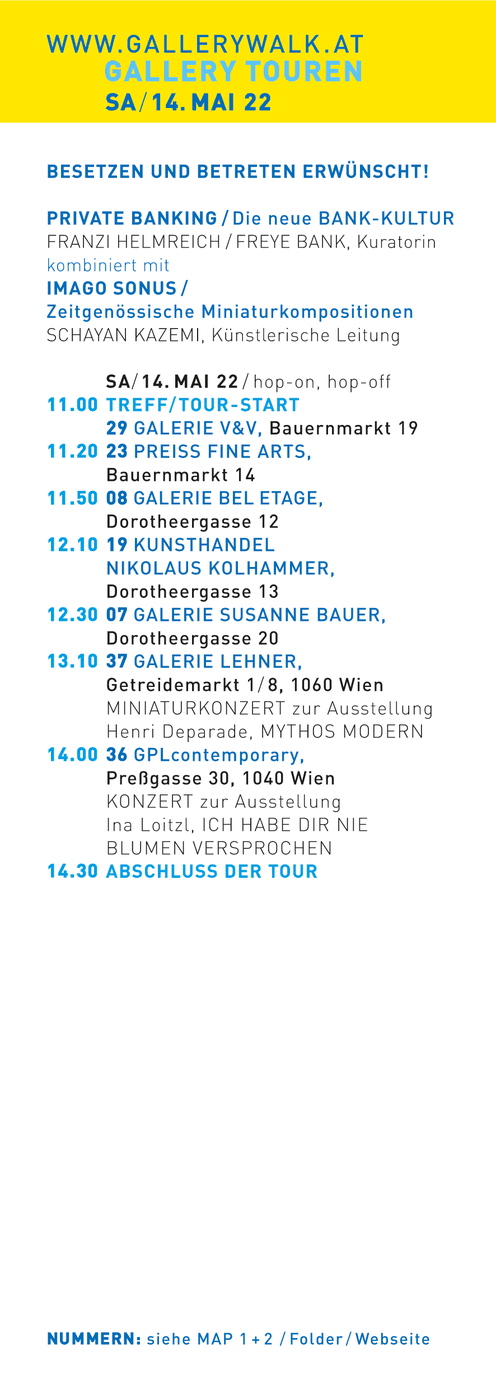 Die GALLERY-TOUREN PROGRAMME - TIMETABLE PREVIEW