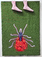 Unterdrücktes, Ängste und Wünsche kommen auf diese Weise zum Ausdruck (Elsy Lahner). V. Bretschneider, ZeckenMahlzeit, Collage, Papier, Kunstrasen, füsse, Kappa,