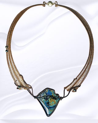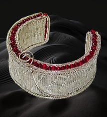 Marianne Cornelius Schmuckwerke entstehen in ihrrem Herzen und nehmen durch ihre Hände Gestalt an. Es sind handgewobene Unikate aus: Echtgold, Sterling Silber, vergoldetem Silber, vergoldetem Kupfer und, in der verspielten Variante, aus farbig emailierten Kupferdraht. Die Steine, die sie verwendet, sind: Alles was die Natur an Schönheiten hergibt. Geschliffen und roh, durchscheinend und opaque. Ausserdem auch ganz besondere Mineralien. Individualität hat Priorität.